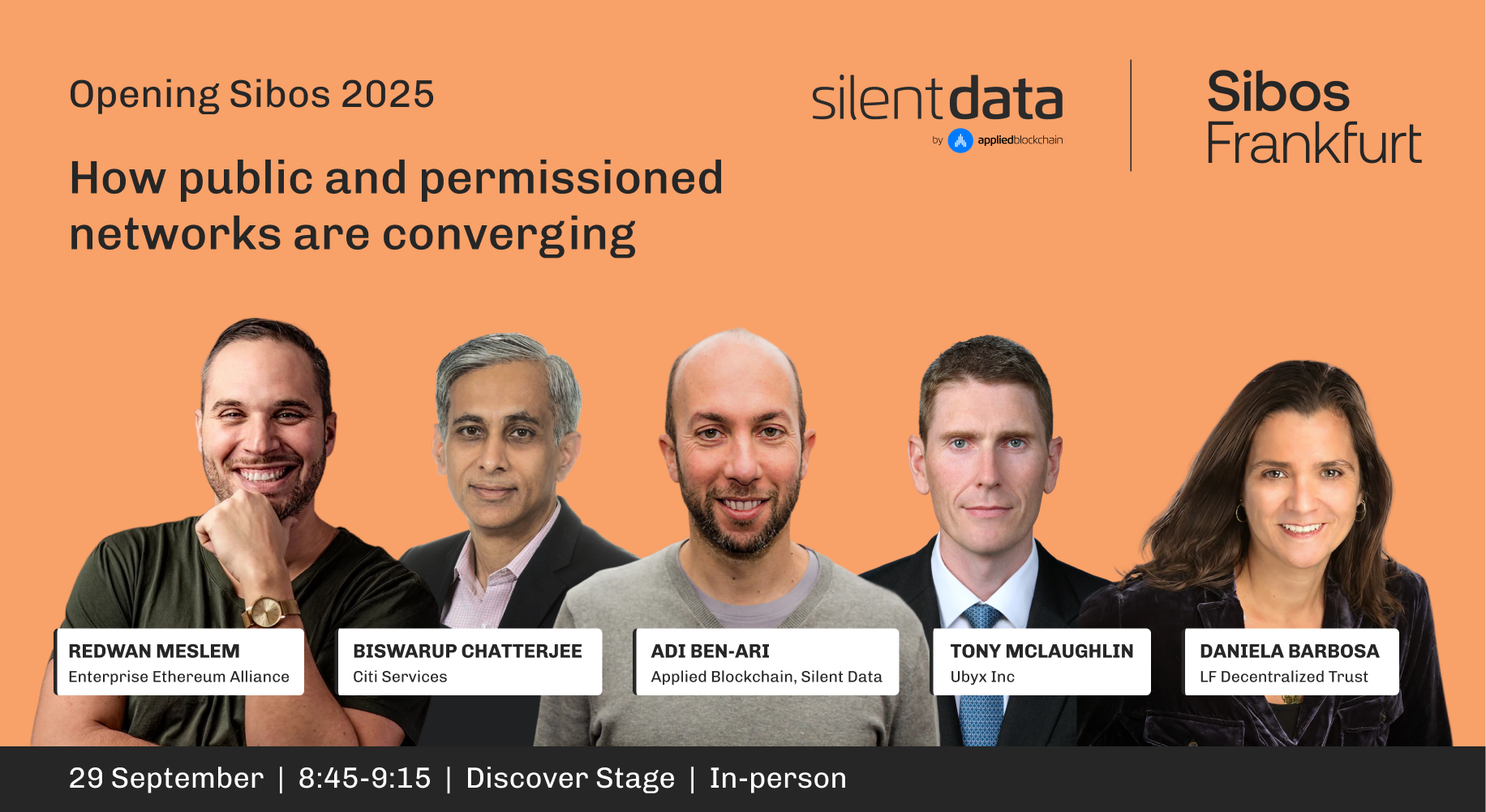Watch the recording of Applied Blockchain Founder & CEO Adi Ben-Ari hosting the opening panel at Sibos 2025, joined by leaders from Citi, the Enterprise Ethereum Alliance, and the Linux Foundation to discuss the future of blockchain, privacy, and digital value exchange.